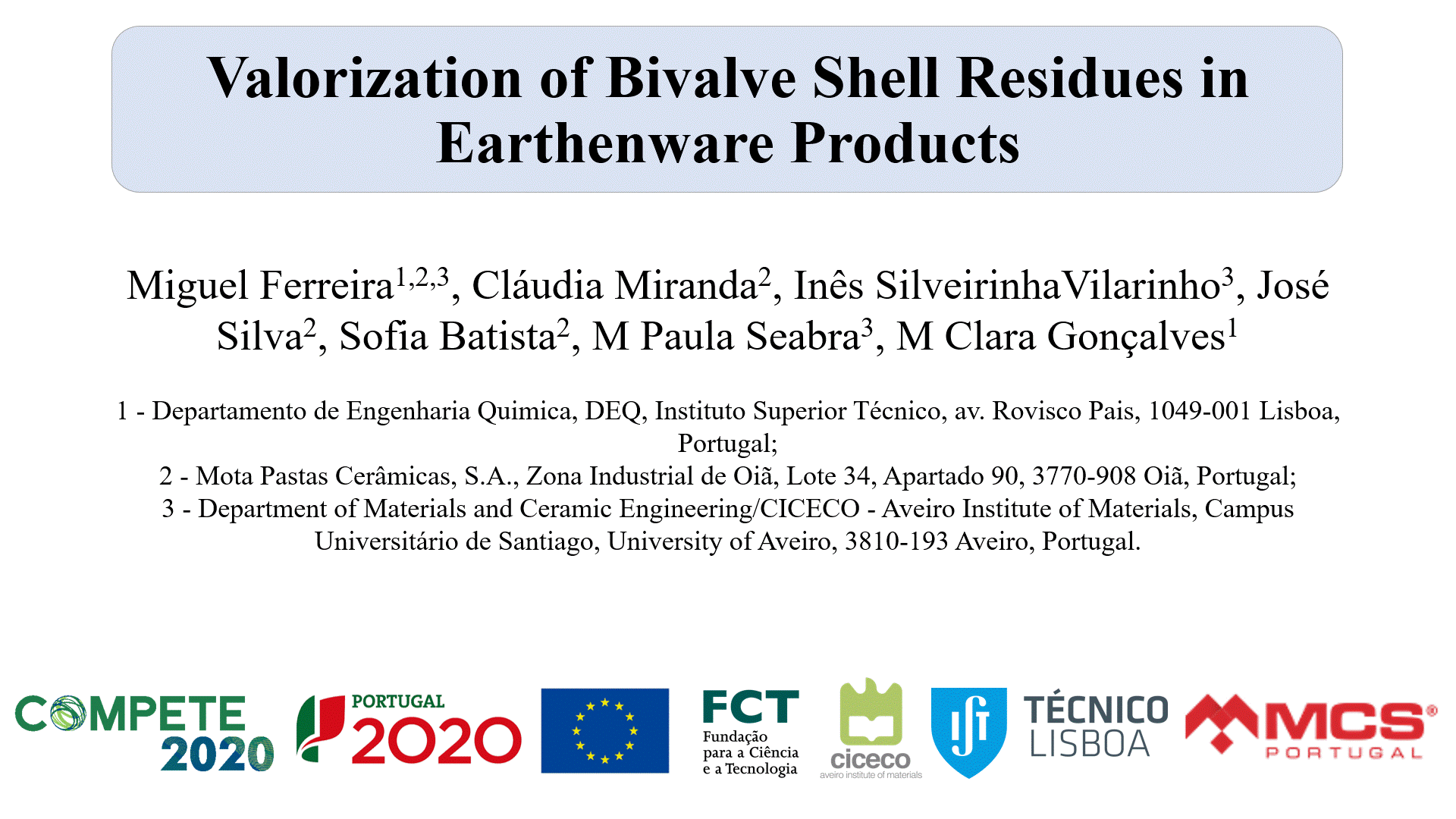 The valorization of industrial by-products and waste has been gaining importance in recent years, also with the investigation of alternatives that can reduce natural raw materials consumption. In this context, the main objective of this work is the valorization of bivalve shells residues, as calcite substitute, in earthenware pastes. The bivalve residues studied were supplied by a cultivation and processing company and after these processes, are considered waste. These residues were characterized and compared with the calcite commonly used in these formulations. Through the mineralogical and chemical characterizations and thermal analysis, it was concluded that these residues could be reused as a source of calcium carbonate, as biocalcite, not requiring any pre-treatment. Formulations were later developed with the gradual replacement of calcite (25, 50, 75 and 100%). Additionally, four maximum sintering temperatures (1025ºC, 1050ºC, 1075ºC and 1100ºC) were performed to assess the substitution influence on the product final characteristics. Furthermore, formulations exclusively with biocalcite with different particle sizes were also developed. The shrinkage, water absorption, flexural strength, colour and thermal expansion coefficient of the fired products were evaluated and no significant differences were observed. Therefore, this work proved that it is possible to use bivalve shell residues as a substitute for calcite in earthenware pastes reducing the virgin raw materials consumption and developing more sustainable products. Moreover, this application will avoid the landfill deposition of the bivalve shell residues reducing the environmental impact of the food processing industry contributing also to the circular economy and industrial symbiosis.