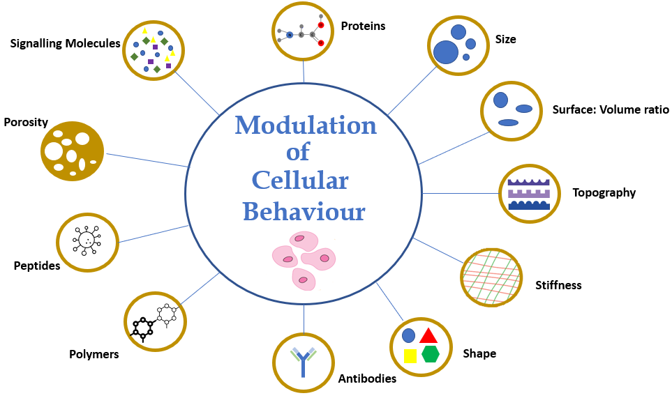 Tissue engineering (TE) is the interdisciplinary scientific field that aims for the regeneration, improvement, or replacement of biological tissues for clinical treatment of organ failure or loss. TE strategies involve the careful combination of cells, scaffolds, and biochemical and physical signals to provide a suitable environment for tissue repair. Cells’ intrinsic ability to recognize, interact and adapt to their surroundings through mechanosensing and mechanotransduction mechanisms, allows the opportunity to control cellular behaviour by customization of scaffolds characteristics and design of specific microenvironments. Several physical properties, like topography, have been shown to mediate cellular activities such as cell adhesion, proliferation and differentiation. In this work, we describe the production of disc-like shaped particles with nanogrooved topography that were subjected to further surface modifications by coating them with poly(ethyl acrylate) (PEA), fibronectin (FN) and bone morphogenic protein-2 (BMP-2), and evaluate their performance in static and dynamic culture conditions. Our results showed that nanogrooved topodiscs, for themselves, lead to the expression of osteogenic markers in hASCs after 21 days of culture, which is enhanced by the PEA/FN/BMP-2 coatings, whereas, dynamic conditions presented better cell distribuition in the cells and particles spheroids.