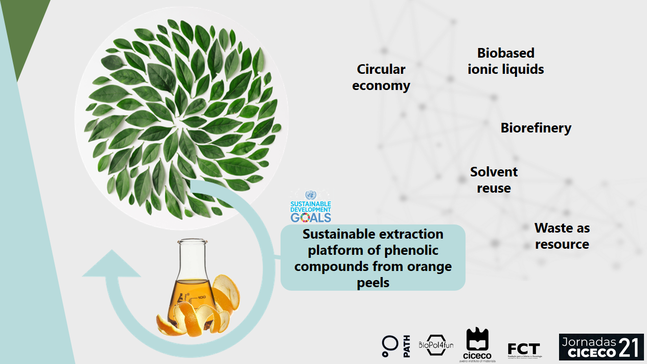 Nowadays, an increasing socioeconomic awareness has shifted the research community interests towards the development of sustainable extraction processes to obtain high value bioactive compounds (HVBCs) from plant biomass (either dedicated crops or by-products), within the circular economy model. To overcome current bioeconomy challenges, the development of new integrated processes is mandatory. This work intends to valorize orange peels, a waste from the food industry, through the isolation of high-value phenolic compounds using novel biobased ionic liquids derived from glycine-betaine, which are able to increase the solubility of rutin and naringin by several orders of magnitude. Experimental design was applied to optimize extraction conditions, resulting in the efficient and selective extraction of rutin and naringin, while allowing the solvent reuse. The developed process is a competitive alternative to conventional processes comprising volatile solvents.