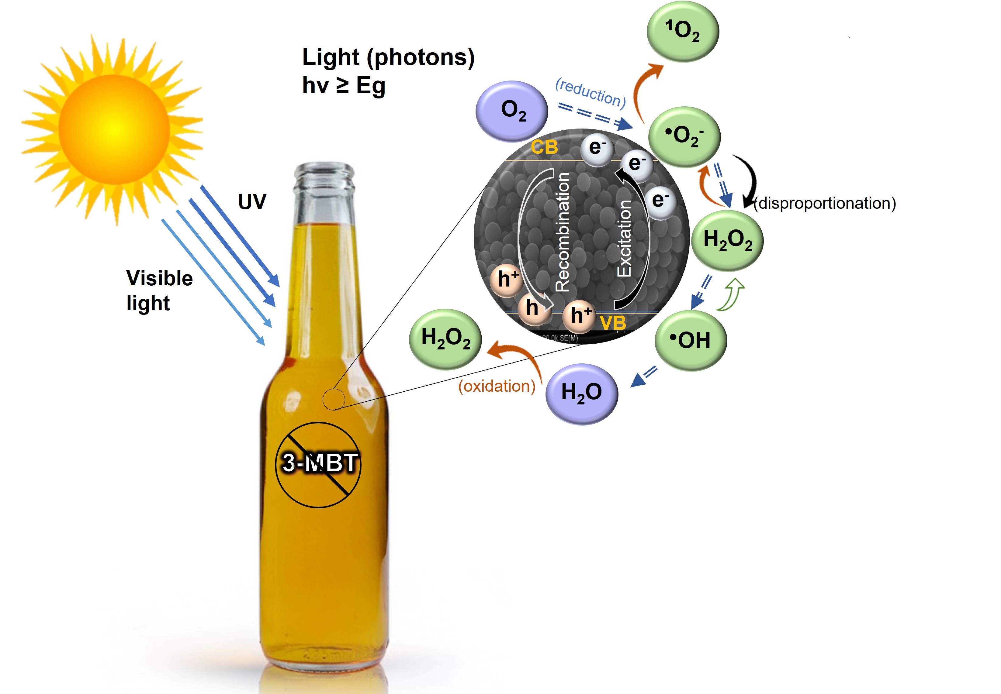 This work is part of the CLEVER project (POCI-01-0247-FEDER-039699), a partnership between BA glass, Super Bock industries and University of Aveiro. The aim of this work is to create a transparent colourless coating that will be applied on top of clear glass beer bottles. Most importantly this coating must be able to absorb radiation in the ultraviolet range (UV-A and UV-B) as well as some visible radiation (below 500 nm). If not, radiation is absorbed and photochemical reactions start, resulting in the formation of undesirable compounds which decrease the beers' quality by altering its organoleptic profile. One of these compounds is 3-methyl-2-butene-1-thiol which can be detected in very low amounts (in the parts per trillion range). The absorbance curves of traditional glasses (green, amber, and clear) are shown, along with the absorbance gain in the clear colourless glass with the application of the best transparent absorptive coating obtained through CLEVER so far, on one of its sides.