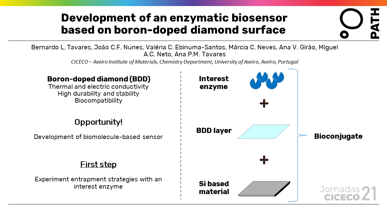 Nanotechnology research studies have increased rapidly in the last decade. With the development of new materials and techniques, synthetic diamonds with doped surfaces permitted the development of a variety of durable and precise thermistors. This study consisted of taking advantage of this material and associate it with an interest enzyme in the attempt of developing a biosensor by adsorption immobilization in a polycrystalline surface. Parameters such as immobilization yield, enzymatic activity, and material regeneration were studied together with surface characterization for quality and structure impact on the process. Results show that non-functionalized materials act the same as the functionalized ones, considering that morphologic structures were similar and the polycrystalline diamond composition wasn't significantly contaminated by secondary carbon structures such as graphite. An FTIR-ATR spectrum allowed to confirm the adsorption of the enzyme to the surface.