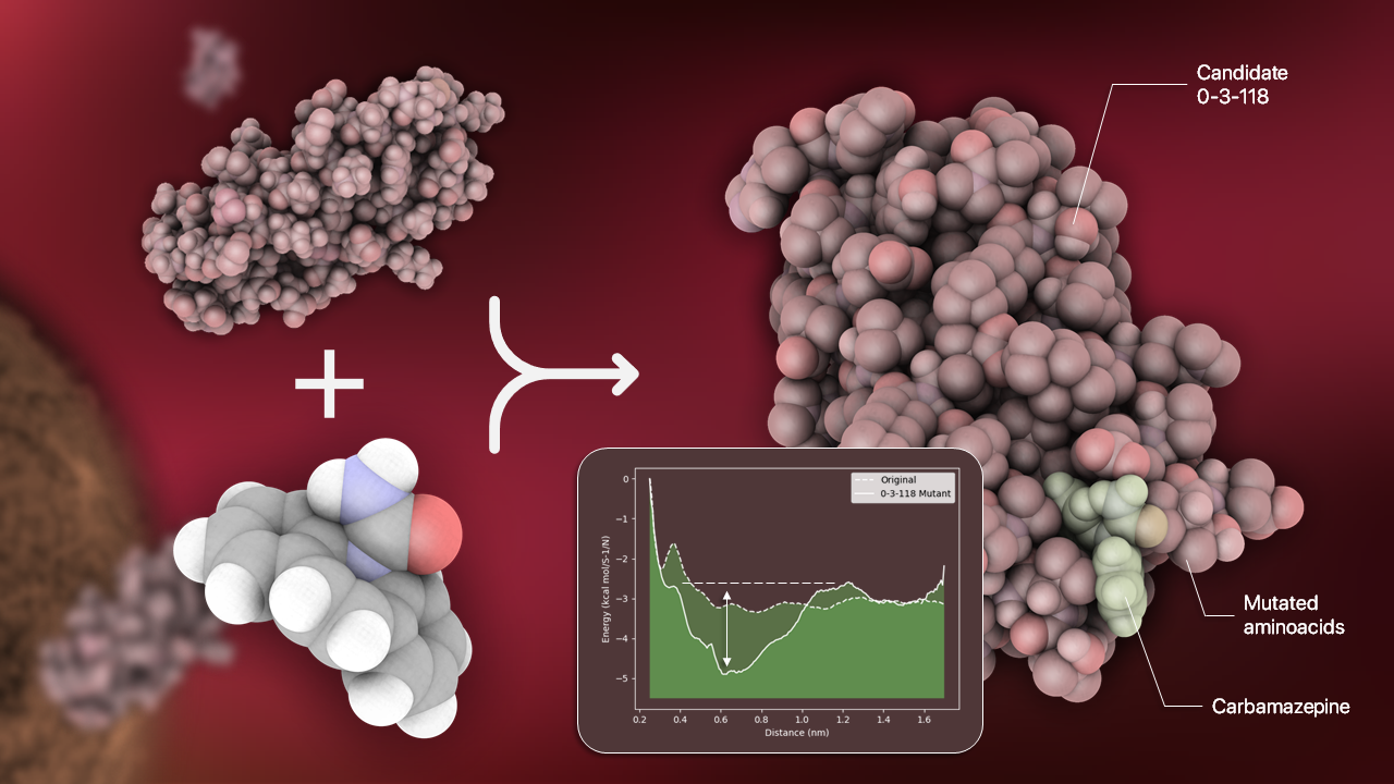 The objective of the present work was to showcase some of the functionalities of the novel ProtoSyn.jl package for Julia, while benchmarking common protein design protocols. Carbamazepine is an anticonvulsant drug used in the treatment of neurological diseases, such as bipolar disorders. This drug has shown high persistence in wastewater treatment plants effluents, with adverse chronic effects on the aquatic life. Although several methods have been previously proposed for its elimination from wastewater treatment plants effluent, applying a specifically designed peptide for its recovery and purification appears to be an unexplored and interesting avenue. As a target peptide, the functionless 2A3D de-novo designed peptide was chosen, based on its thermostability properties. ProtoSyn.jl 1.0 was then employed in the prototyping of a distributed computing protocol for the design of a novel active site in the peptide. A grid-based approach was used to identify anchorage points, applying rigid body translational and rotational movements for the conformational exploration of the local space. For each attempted conformation, 10 distributed replicas were spawned, each running 5000 steps of a Monte Carlo design simulation. In each of these simulations, local mutagenesis was attempted, stabilizing any interacting aminoacid with the ligand. Overall, over 1 million conformations and sequences were explored, from which candidate structures were further studied in molecular dynamics and potential of mean force simulations. Candidate 0-3-118 showed promising early results, generating a new energy well for the specific adsorption of carbamazepine and acting a seed point for further exploration.